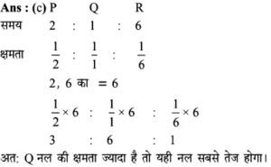 18. तीन नल P, Q और R द्वारा अलग-अलग एक टंकी को भरने में लिए गए समय का अनुपात 2:1:6 है। इनमें से कौन सा नल सबसे तेज है?
