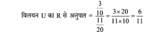 19. तीन पाइप P,Q और R एक टैंक को 30 मिनट, 20 मिनट और 10 मिनट में भर सकते है। जब टैंक खाली होता है, तो तीनों पाइपों को खोल दिया जाता है, जबकि वे क्रमशः तीन रासायनिक विलयनों S,T और U का निर्वहन करते है। 3 मिनट बाद टैंक में मौजूद सामग्री में विलयन U का अनुपात ज्ञात कीजिए।