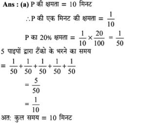 20. यदि एक पाइप P एक टैंक को मिनट मे भरता है। 5 पाइप, जिनमें प्रत्येक की क्षमता पाइप P की 20% है, टैंक को भर सकते हैं?