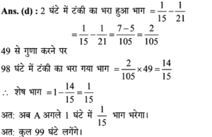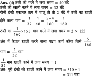 10. पाइप A एक भरी हुई टंकी को 32 घंटों में खाली कर सकता है जबकि पाइप B इसी खाली टंकी को 40 घंटों में भर सकता है। यदि पाइप A और B को टंकी भरे होने पर एकान्तर रूप से प्रत्येक बार एक घंटे के लिए चालू किया जाता है तब टंकी खाली होने में कितना समय लगेगा?