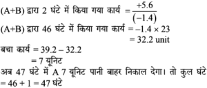 3. पाइप A एक भरी हुई टंकी को 5.6 घंटों में खाली कर सकता है, जबकि पाइप B, उसी खाली टंकी को 7 घंटे में भर सकता है। टंकी के पूरे भरे रहने की स्थिति में यदि पाइप A और B, को बारी-बारी से प्रत्येक एक घंटे के लिए खोला जाता है, तो टंकी को खाली करने में कितना समय लग सकता है?