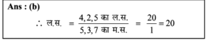 20. दो संख्याएँ 3 : 5 के अनुपात में है। उनका ल.स.प. (LCM) 75 है। उनका म.स.प. (HCF) ज्ञात कीजिए।
