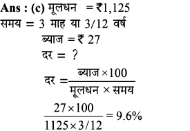9. रुपए 1,125 को तीन महीने के लिए निवेश करने पर रुपए 27 का ब्याज प्राप्त होता है। साधारण ब्याज की वार्षिक दर कितनी होगी?