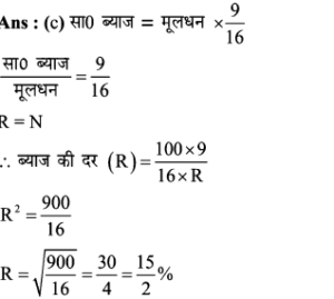 19. दी गई ब्याज की दर के प्रतिशत और समय का संख्यात्मक मान बराबर है तथा एक राशि पर साधारण ब्याज मूलधन का 9/16 है। साधारण ब्याज की दर ज्ञात कीजिए।