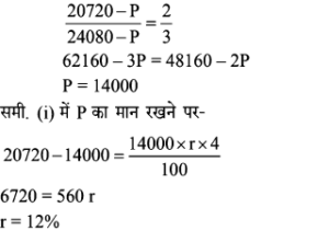 1. यदि कोई राशि 4 वर्षों में रुपए 20720 और 6 वर्षों में रुपए 24080 हो जाती है, तो वह राशि और साधारण ब्याज की दर ज्ञात कीजिए।