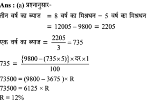2. साधारण ब्याज की समान दर पर एक राशि 5 वर्ष में रुपए 9800 और 8 साल में रुपए 12005 हो जाती है। ब्याज की दर क्या है?