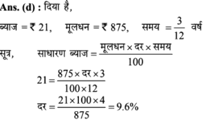 13. 3 महीनों के लिए निवेश किए गए रुपए 875 पर रुपए 21 ब्याज मिलता है। साधारण ब्याज की प्रति वर्ष दर कितनी थी?