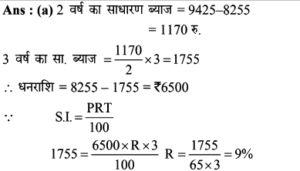 8. मणि एक बैंक में रुपए 12,500 जमा करता है और यह साधारण ब्याज की दर से 6 वर्ष में रुपए 15,500 हो जाता है। ब्याज की दर क्या है?