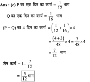 10. P और Q एक कार्य को क्रमशः 12 दिनों और 16 दिनों में पूरा कर सकते हैं। वे एक साथ 4 दिन तक काम करते हैं। कार्य का कितना भाग शेष रह जाता है?