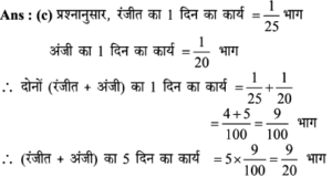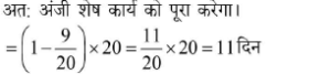 16. रंजीत किसी कार्य को 25 दिन में पूरा कर सकता है जबकि अंजी इसे 20 दिन में समाप्त कर सकता है। वे 5 दिन तक एक साथ कार्य करते हैं और फिर रंजीत छोड़ देता है। अंजी शेष काम को खत्म करने में कितने दिन लगाएगा?