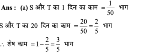 17. S और T एक काम को 50 दिनों में पूरा कर सकते है। उन्होंने 20 दिनों तक साथ काम किया और उसके बाद छोड़ दिया। बताइये कितना काम बाकी रह गया है?