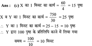 18. X, 4 मिनट में 60 पृष्ठों की प्रतिलिपि कर सकता है, X तथा ४ दोनों मिलकर 30 मिनट में 750 पृष्ठों की प्रतिलिपि कर सकते है। Y कितने मिनट में 100 पृष्ठों की प्रतिलिपि कर सकता है?