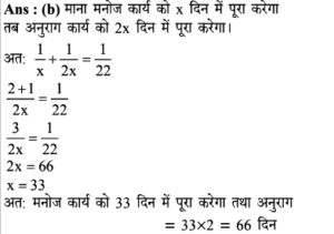 5. मनोज, अनुराग से दोगुना सक्षम मछुआरा है तथा दोनों मिलकर एक कार्य को 22 दिनों में समाप्त करते है। अनुराग अकेला उसी कार्य को कितने दिनों में पूरा करेगा?