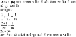 6. उल्लास की काम करने की क्षमता तेजस से दोगुनी है।। वे एक साथ एक काम को 18 दिन में समाप्त कर सकते है, तो तेजस उसी काम को अकेला कितने दिन में पूरा करेगा?