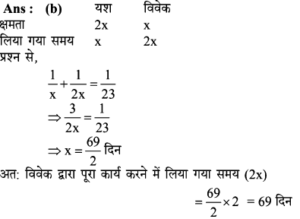 7. यश, विवेक से दुगुना सक्षम ड्राफ्टमैन है तथा वे मिलकर एक काम को 23 दिनों में समाप्त करते हैं। विवेक अकेला उसी कार्य को कितने दिनों में पूरा करेगा?