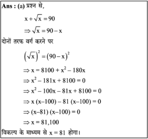 5. यदि x + √x =90 है तो x का मान ज्ञात कीजिए।