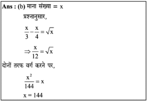 11. किसी संख्या के 1/3 और 1/4 के बीच का अंतर उसके वर्गमूल के बराबर है। संख्या ज्ञात कीजिए।