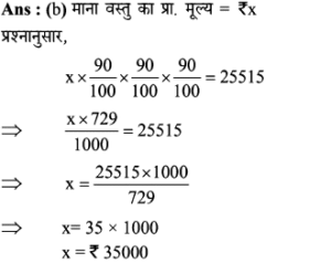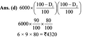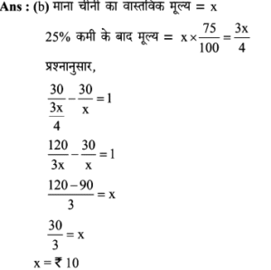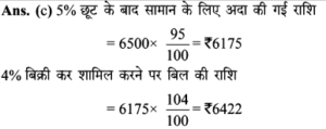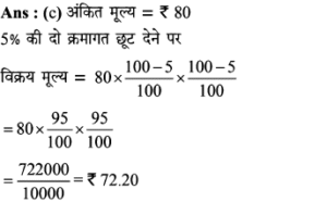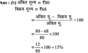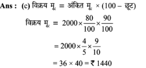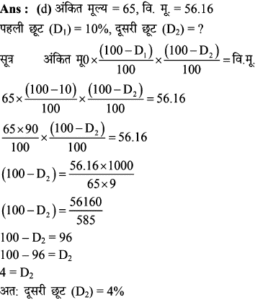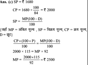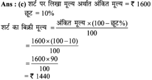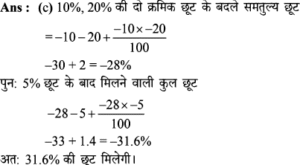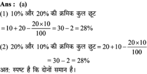 Aptitude | छूट (Discount) | Online Test – 01 Leave a Comment / Math Aptitude / By admin 0% Rajasthan GK In HindiAptitude | छूट (Discount) | Online Test - 01 1 / 201. यदि विक्रय मूल्य 1680 हो, तो 16% की हानि होती है। यदि 8% की छूट देने के बाद भी 15% का लाभहोता हो, तो उत्पाद का अंकित मूल्य कितना होना चाहिए? 2200 2000 2500 2600 2 / 202. एक दुकानदार हर 4 महीने में एक बार 10% की छूट देता है। यदि कोई व्यक्ति इस योजना के तहत एक वस्तु को दिसम्बर में 25515 में खरीदता है, तो जनवरी में उस वस्तु का प्रारम्भिक मूल्य क्या था? 45000 35000 36000 40000 3 / 203. इनमें से कौन सा बेहतर है?(1) 10% और 20% की क्रमिक छूट।(2) 20% और 10% की क्रमिक छूट। दोनो समान हैं। निर्धारित नहीं किया जा सकता हैं। 20% और 10% की क्रमिक छूट। 10% और 20% की क्रमिक छूट। 4 / 204. किसी वस्तु का विक्रय मूल्य ज्ञात कीजिए, यदि दुकानदार उसे अंकित मूल्य 80 पर 5% की दो क्रमागत छूट देता है। 72 70.10 72.20 73 5 / 205. 65 में सूचीबद्ध की गई एक वस्तु को दो क्रमिक छूटों के बाद 56.16 में खरीदा गया था, जिनमें से पहली छूट 10% है। दूसरी छूट ज्ञात कीजिए। 9% 6% 2% 4% 6 / 206. किसी शोरूम में किसी वस्तु का सूची मूल्य 2000 है, और इसे 20% और 10% के क्रमागत छूटों पर बेचा जा रहा है। इसका शुद्ध बिक्री मूल्य ज्ञात कीजिए। 1520 1400 1440 1700 7 / 207. बाजार मूल्य में 25% की कमी के साथ, सीता 30 में 1 किग्रा अधिक चीनी खरीद सकती है। चीनी का वास्तविक मूल्य ज्ञात कीजिए। 7.50 10 16.50 7.30 8 / 208. एक बिक्री के विज्ञापन में 10% और 20% की दो क्रमिक छूट प्रदर्शित की गई हैं। यदि नकद भुगतान पर 5% की अतिरिक्त छूट दी जाती है, तो नकद भुगतान करके खरीदारी करने पर मिलने वाली कुल छूट ज्ञात कीजिए। 40% 35% 31.6% 32% 9 / 209. दिए गए विवरणों का उपयोग करके वास्तविक लाभप्रतिशत ज्ञात कीजिए।1. बिना किसी छूट के, 20% लाभ होता। 2. हालाँकि 5% छूट की पेशकश की गई है। 15% 12% 14% 20% 10 / 2010. 80 अंकित मूल्य वाली एक वस्तु को 68 में बेचा जाता है। छुट की दर ज्ञात कीजिए। 12% 15% 16% 18% 11 / 2011. 5% की छूट के साथ 6500 का सामान खरीदा गया। तब बिल में 4% की बिक्री कर शामिल था। बिल की राशि ज्ञात कीजिए। 6500 6576 6422 6600 12 / 2012. 6000 के लेबल मूल्य पर दो क्रमागत छूटों की वजह से विक्रय मूल्य घटकर हो जाता है, यदि 10% और 20% की क्रमिक छूट दी गई हो। 4230 4000 4200 4320 13 / 2013. 5% कमीशन काटने के बाद, एक टेलीविजन सेट का मूल्य 9595 है। इसका अंकित मूल्य ज्ञात कीजिए। 10000 10100 10075 10500 14 / 2014. एक शॉप 1 उत्पाद के एमआरपी पर 30% छूट प्रदान करता है। यदि उत्पाद की एमआरपी 500 है, तो बिक्री मूल्य क्या है? 500 250 300 350 15 / 2015. एक शर्ट पर 1,600 लिखा था। दिवाली त्यौहार ऑफर के दौरान, उस पर 10% छूट दी जाती है। शर्ट की बिक्री मूल्य क्या होगा? 1400 1540 1440 1240 16 / 2016. नेहा ने 30% छूट पर 1300 में एक पुस्तक खरीदी और इसे 30% लाभ पर बेच दिया। उसने कितना कमाया? 273 390 780 0 17 / 2017. छूट की दर ज्ञात करें, जब अंकित मूल्य 1,880 और विक्रय मूल्य 1,598 है। 12% 20% 15% 13% 18 / 2018. किसी वस्तु का अंकित मूल्य 352 है, और इसका विक्रय मूल्य 326 है। वस्तु पर दी गयी छूट की दर (दशमलव के एक पूर्ण अंक तक) क्या है? 8% 7.8% 7.4% 8.3% 19 / 2019. एक कं