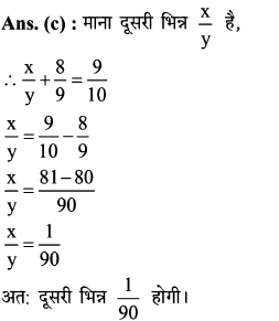 11. दो भिन्न संख्याओं का योग 9/10 है। यदि इनमें से एक भिन्न 8/9 है, तो दूसरी भिन्न संख्या क्या होगी?