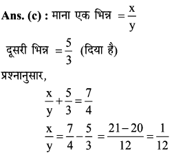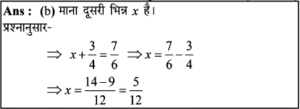 18. दो भिन्नों का योग 7/6 है। उनमें से एक भिन्न 3/4 है। दूसरी भिन्न होगी: