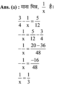 16. निम्न में से कौन सी भिन्न को 3/4 से घटाने पर परिणाम 5/12 प्राप्त होगा?