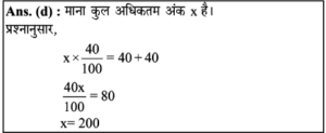 19. एक विद्यार्थी को उत्तीर्ण होने के लिए 40% अंक प्राप्त करना आवश्यक है। उसे एक परीक्षा में 40 अंक प्राप्त हुए और वह 40 अंकों से अनुत्तीर्ण हो गया। परीक्षा के प्राप्त करने योग्य अधिकतम अंक कितने हैं?