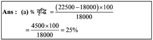 2. एक गाँव की जनसंख्या 18000 से बढ़कर 22500 हो गई। वृद्धि का प्रतिशत ज्ञात कीजिए।