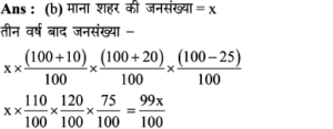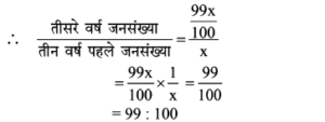 3. एक शहर की आबादी में लगातार दो वर्षों में 10% और 20% की वृद्धि हुई, किन्तु तीसरे वर्ष इसमें 25% की कमी हुई। तीसरे वर्ष में जनसंख्या और 3 वर्ष पूर्व की जनसंख्या का अनुपात ज्ञात कीजिए।