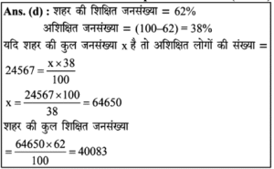 4. एक शहर की 62% जनसंख्या शिक्षित है। यदि शहर में अशिक्षित लोगों की संख्या 24567 है, तो शिक्षित लोगों की संख्या कितनी है?
