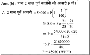 8. 2018 में एक कॉलोनी की जनसंख्या 54000 हो गयी, जो 5 प्रतिशत प्रति वर्ष की दर से बढ़ रही है। 2 साल पूर्व कॉलोनी की आबादी ज्ञात करें।