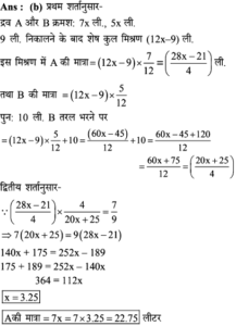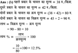 19. दो प्रकार के चावल, जिनका मूल्य रुपए 38 प्रति किग्रा और रुपए 42 प्रति किग्रा है, समान मात्रा में मिलाए जाते हैं। और रुपए 45 प्रति किग्रा के भाव पर बेचे जाते हैं। प्रतिशत लाभ ज्ञात कीजिए।