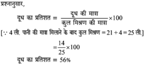 5. दूध-पानी के मिश्रण का 4/5 भाग दूध था। कुल 20 लीटर वाले इस मिश्रण में यदि 5 लीटर पानी और मिलाया जाता है तो नए मिश्रण में दूध का प्रतिशत होगा।