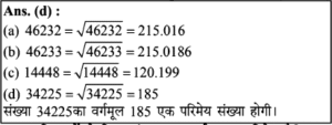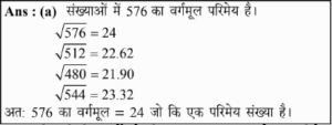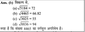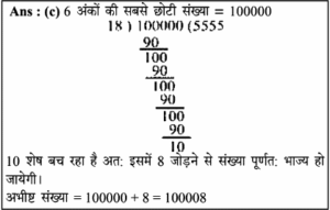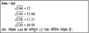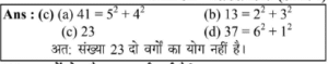 Aptitude | संख्या पद्धति (Number System) | Online Test – 05 Leave a Comment / Math Aptitude / By admin 0% Rajasthan GK In HindiAptitude | संख्या पद्धति (Number System) | Online Test - 05 1 / 201. 4 अंकों वाली सबसे छोटी संख्या ज्ञात करें जो एक पूर्ण वर्ग हो- 1000 1024 1081 1064 2 / 202. वह छोटी से छोटी 6 अंकों की संख्या ज्ञात करे जो 18 का गुणज है। 100000 999900 100008 100006 3 / 203. सबसे छोटी भिन्न को ज्ञात करें। 3/4 11/13 5/7 9/11 4 / 204. निम्न में से किस संख्या का अपरिमेय वर्गमूल होगा? 21025 18025 13225 15625 5 / 205. सभी अपरिमेय संख्याएँ - पूर्णांक काल्पनिक है पूर्ण संख्या वास्तविक संख्या है 6 / 206. नीचे दी गई संख्याओं में से किस का वर्गमूल परिमेय है? 576 512 480 544 7 / 207. निम्नलिखित में से किस संख्या का वर्गमूल परिमेय होगा? 46232 46233 14448 34225 8 / 208. निम्न में से किस संख्या का वर्गमूल अपरिमेय है? 5184 4465 3025 8836 9 / 209. इनमें से किसका वर्गमूल एक परिमेय संख्या है? 336 344 320 324 10 / 2010. निम्नलिखित में से कौन सी संख्या का वर्गमूल अपरिमेय होगा? 6441 9604 7921 5776 11 / 2011. नीचे दी गई संख्याओं में से किसका वर्गमूल एक परिमेय संख्या है? 144 136 128 120 12 / 2012. वह छोटी से छोटी संख्या ज्ञात कीजिए, जिसे 1780 में जोड़ने पर प्राप्त योग पूर्ण वर्ग हो। 46 49 69 72 13 / 2013. सबसे छोटा पूर्णांक ज्ञात कीजिए जिसका घन स्वयं के बराबर है। -1 2 1 0 14 / 2014. एक धनात्मक पूर्णांक का पांच गुना इसके वर्ग के दोगुने से 3 कम है। पूर्णांक ज्ञात कीजिए। 3 8 2 5 15 / 2015. वह छोटी से छोटी पूर्ण वर्ग संख्या ज्ञात कीजिए, जो 21, 36 और 66 से विभाज्य हो। 214344 231444 214434 213444 16 / 2016. इनमें से कौन सी वर्ग संख्या को दो अभाज्य संख्याओं के योग के रूप में व्यक्त नहीं किया जा सकता है? 81 49 121 144 17 / 2017. किसी संख्या के वर्ग के तीन गुने से संख्या के 4 गुने को घटाने पर प्राप्त संख्या उस संख्या से 50 अधिक है। संख्या ज्ञात करें। 5 4 6 10 18 / 2018. निम्न में से कौन सा पूर्ण वर्ग नही है? 2025 16641 1250 9801 19 / 2019. इनमें से कौन सी संख्या दो वर्गों का योग नहीं ह 41 13 23 37 20 / 2020. इनमें से कौन-सा पूर्ण वर्ग है? 9801 9887 9013 9016 Your score is Facebook Twitter 0% Restart quiz