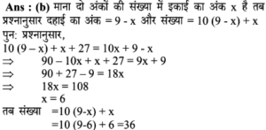 5. दो अंको वाली संख्या के अंको का योग 9 है। जब संख्या में 27 जोड़ा जाता है, तो अंको के स्थान आपस में बदल जाते है। संख्या ज्ञात करें।