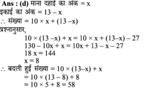 6. एक दो अंको की संख्या के अंको का योग 13 है। यदि उन अंको को आपस में बदल दिया जाता है, तो संख्या 27 से घटती है। बदली हुई संख्या ज्ञात कीजिए।