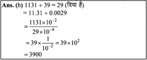 8. यदि 1131 ÷ 39 = 29, तो 11.31 ÷ 0.0029 =?