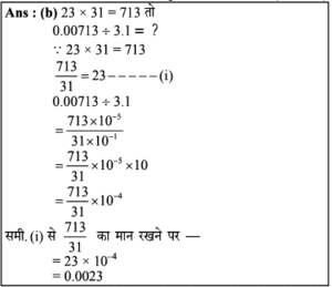 1. 23 × 31 = 713 तो 0.00713 ÷ 3.1 कितने के बराबर है?