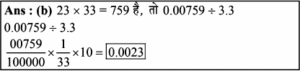 5. 23 × 33 = 759 , तो 0.00759 ÷ 3.3 कितना होगा?