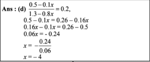 2. यदि 0.5 - 0.1x/1.3 - 0.8x = 0.2 तो x = ?