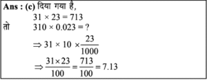 3. यदि 31 × 23 = 713 , तो 310 × 0.023 =
