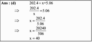 10. यदि 202.4 ÷ x = 5.06 तो X का मान ज्ञात करें।