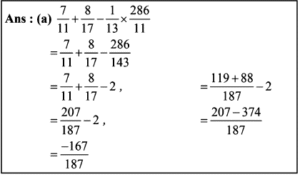 18. 7/11 + 8/17 - 1/13 × 286/11 का मान ज्ञात कीजिए।