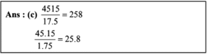 13. यदि 4515 ÷ 17.5 = 258 है, तो 45.15 ÷ 1.75 =?