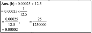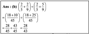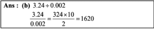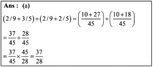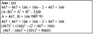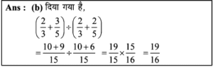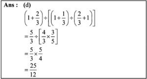 Aptitude | सरली कारण ( Simplification ) | Online Test – 06 Leave a Comment / Math Aptitude / By admin 0% Rajasthan GK In HindiAptitude | सरली कारण ( Simplification ) | Online Test - 06 1 / 201. 0.00025 ÷ 12.5 = ? 0.0025 0.00002 0.0002 0.000002 2 / 202. 3.24 ÷ 0.002 = का मान ज्ञात कीजिए। 16.20 1620 162 1.620 3 / 203. (1 + 2/3) ÷ [(1 + 1/3) ÷ (2/3 + 1)] =? 4/3 3/4 12/25 25/12 4 / 204. हल करें (0.25 × 0.004) + 0.374 - 0.72 =? -0.345 0.325 1.94 -0.945 Ans: (a) (0.25 × 0.004) + 0.374 - 0.72 = 0.001-0.346 = -0.3455 / 205. 0.00056 ÷ 0.07 की गणना कीजिए। 0.08 0.008 0.0008 0.8 6 / 206. (3/2 + 5/3) ÷ (3/2 + 2/3) को सरल करो। 1 19/13 13/19 13/16 7 / 207. (2/5 + 2/9) ÷ (2/5 + 5/9) को सरल कीजिए। 28/45 28/43 27/34 7/17 8 / 208. (2/9 + 3/5) ÷ (2/9 + 2/5) को सरल कीजिए। 37/28 47/43 43/47 41/47 9 / 209. 0.08 × 0.23 ÷ 0.004 का मान ज्ञात करें 46 4.6 0.046 0.0046 10 / 2010. 0.55 × 0.81/4.5 =? 0.99 0.099 9.9 0.0099 11 / 2011. सरल कीजिए :(2/3 + 3/5) ÷ (2/3 + 2/5) 1 19/16 15/16 13/16 12 / 2012. सरल करें- √12 × √27 4√3 3√4 18 9 13 / 2013. 73 × 73 + 42 × 42 - 2 × 73 × 42 का मान ज्ञात कीजिए। 961 676 981 861 14 / 2014. (0.2 × 0.2 × 0.2)×(0.06 × 0.06 × 0.06) ÷(0.12×0.12 × 0.12)=? 0.008 0.001 0.002 0.006 15 / 2015. 140 ÷ [61 - {36 - (40 - 60 ÷ 12 × 6)}] = 2 5 4 10 Ans. (c) = 140 ÷ [61 - {36 - (40 - 60 ÷ 12 × 6)}]= 140 ÷ [61 - {36 - (40 - 5 × 6)}] = 140 ÷ [61 - {36 - (10)}] = 140 ÷ [61 - 26] = 140 ÷ 35 = 416 / 2016. 144 ÷ [40- { 37-(25-112 ÷ 7 × 4 )}] 4 8 2 6 Ans. (d) : 144 ÷ [40- { 37-(25-112 ÷ 7 × 4 )}] = 144 ÷ [40 - {37 - (25 - 112 ÷ 28)}] = 144 ÷ [40 - {37 - (25 - 4)}] = 144 ÷ [40 - {37 - 21}] = 144 ÷ [40 - 16] = 144 ÷ 24 = 617 / 2017. निम्न हल करें-24 ÷ (19 - 9 ÷ 3 × 9) = -3 3 4 6 Ans: (a) 24 ÷ (19 - 9 ÷ 3 × 9) = 24 ÷ (19 - 3 × 9) = 24 ÷ (19 - 27) = 24 ÷ (- 8) =-318 / 2018. 467 × 467 + 166 × 166 - 2 × 467 ×166 = समीकरण को सरल करें 90106 960600 90601 90060 19 / 2019. 97 × 97 =? 9391 9409 9049 9309 20 / 2020. निम्नलिखित का मान ज्ञात करें-(250 x 250 x 250 + 150 × 150 × 150)/(250×250-250 × 150 + 150 × 150 )=? 40000 400 40 500 Your score is Facebook Twitter 0% Restart quiz