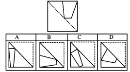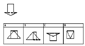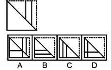 11. उस विकल्प का चयन करें जो निम्न पारदर्शी शीट (समस्या चित्र) को, दर्शाई गई बिंदुदार रेखा पर मोड़ने पर, चित्रित करता है।